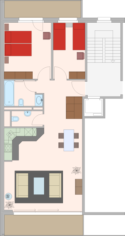 Die Wohnung verfügt über zwei Schlafzimmer und einen grossen Wohn-Essbereich mit direktem Zugang zum sonnigen Südbalkon.